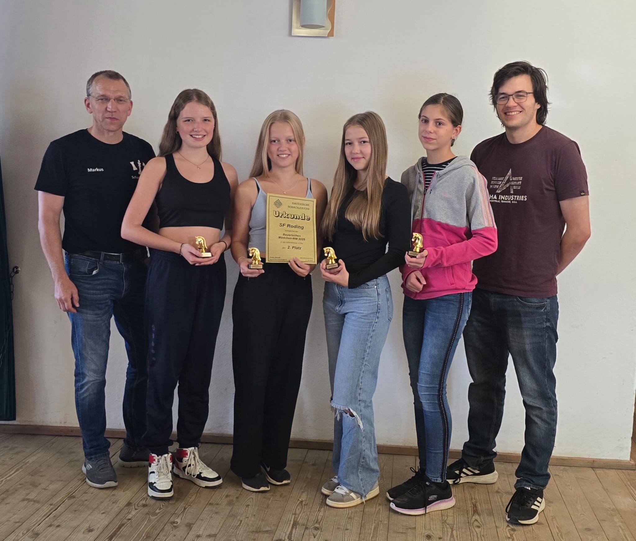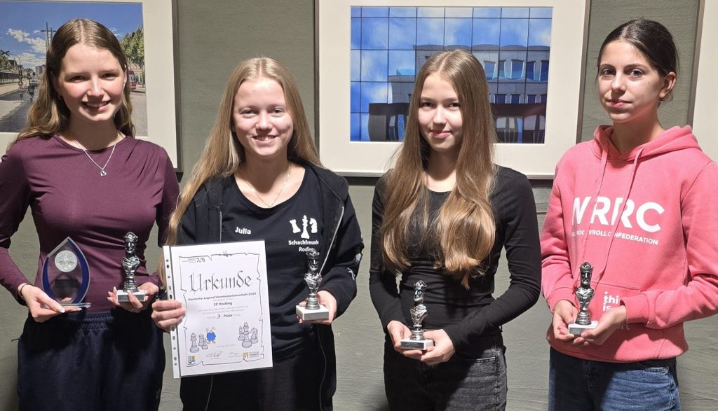 Zeitgleich kämpfte die U16w-Mannschaft der SF Roding bei der DVM in Chemnitz um die deutschen Titel. Das Team bestand aus Julia und Ramona Schwarzfischer sowie Nina Weber und wurde am Spitzenbrett von Gastspielerin Valentina Neumeier (SK Kelheim) verstärkt. Die Betreuung vor Ort übernahmen Jugendleiter Markus Schwarzfischer sowie SK Kelheim-Trainer Sebastian Piehler.
