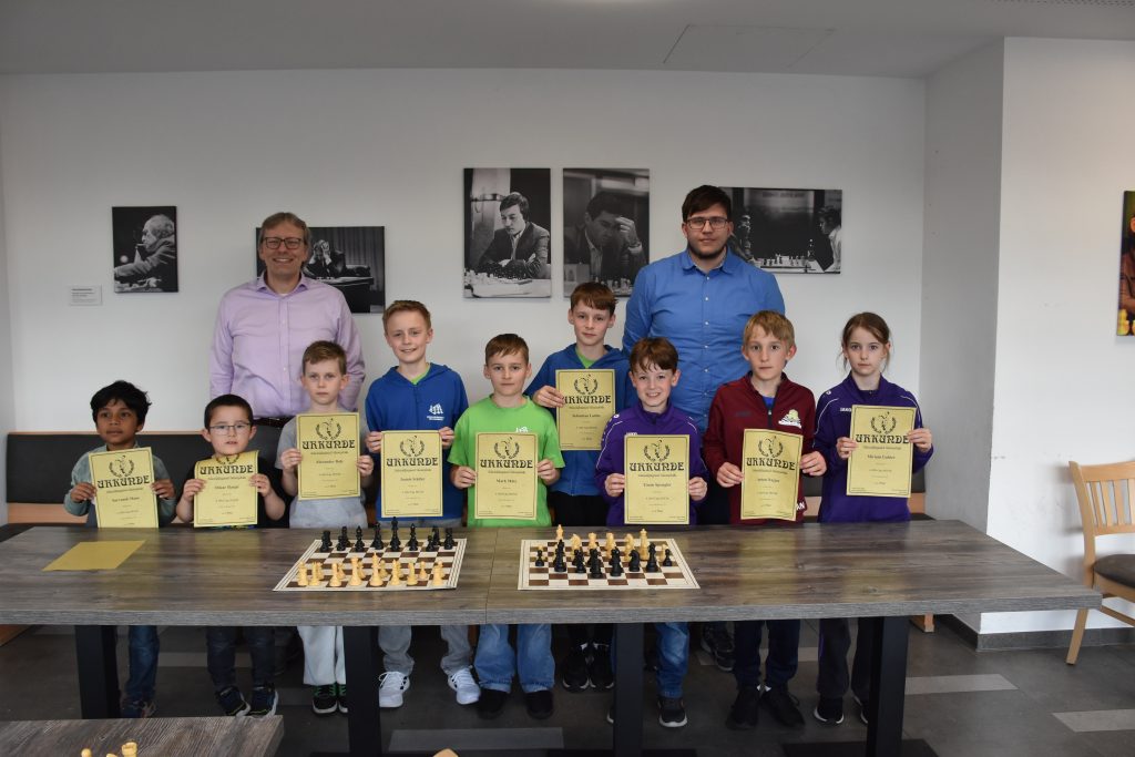 U10: In der U10 starteten mit Konstantin Frikel (SK Kelheim) und Mark MĂ€tz (SF Tegernheim) zwei junge Talente. Konstantin hatte es dabei mit der Auslosung gleich ganz dicke erwischt und er musste in der ersten Runde gegen den Topgesetzten Caspar Qiu, welcher sich spĂ€ter auch zum bayerischen Meister krönte, ran und musste bereits in der ersten Runde eine bittere Niederlage einstecken. Im weiteren Verlauf des Turnieres kĂ€mpfte er sich aber richtig ins Turnier, holte 4 aus 5 und hatte sogar vor der letzten Runde noch die Chance auf das Podest zu springen, sollte er gewinnen. Es reichte schlussendlich leider nur fĂŒr ein Remis und damit einen sehr guten 5. Platz im Turnier. FĂŒr Mark verlief das Turnier nicht ganz so erfolgreich, dennoch konnte auch er gegen nominell stĂ€rkere Gegner punkten und am Ende mit 2,5 Punkten den 20. Platz unter den 24 Teilnehmern machen.